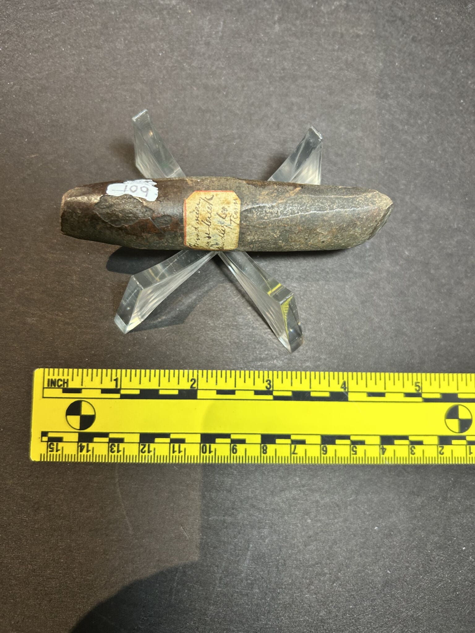 - Reworked ground stone celt (hammer/pestle form)
