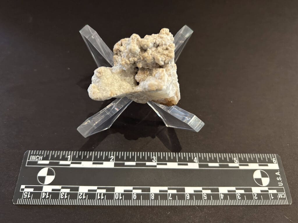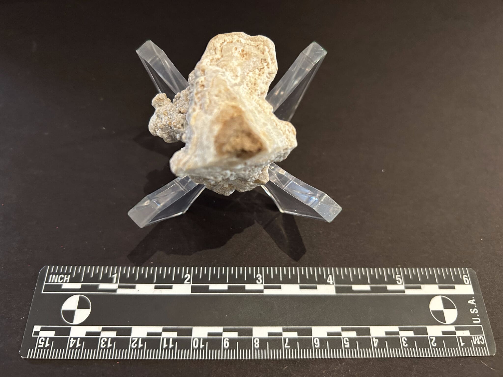 Weathered chalcedony nodule fragment, possible silicified geode fragment with hollow core.