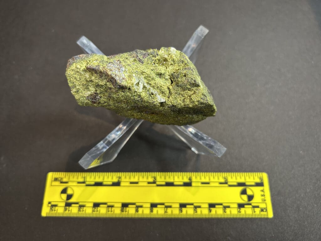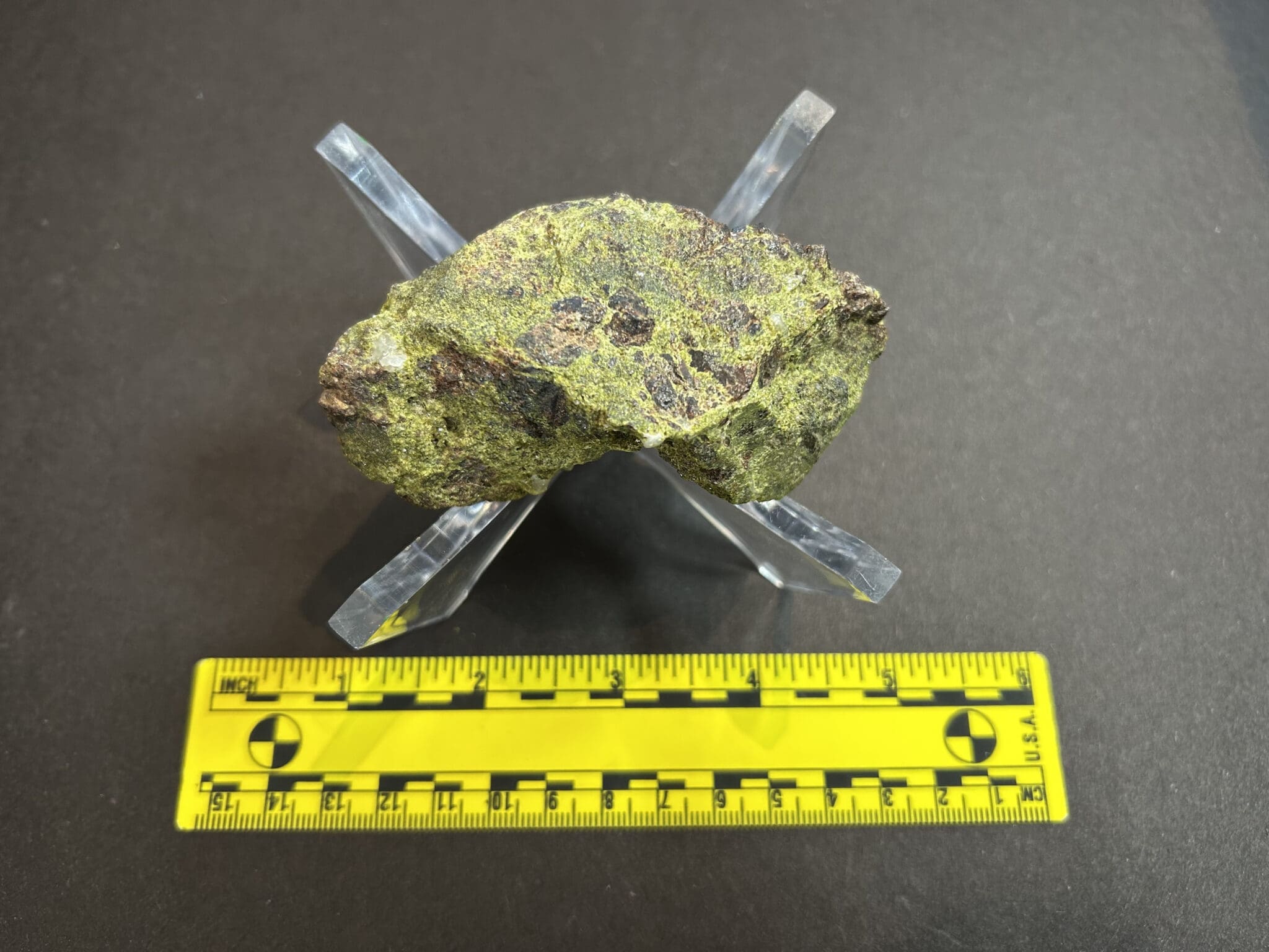 Garnet–chlorite schist — a metamorphic rock formed under greenschist-facies conditions; composed of chlorite, quartz, and garnet porphyroblasts.